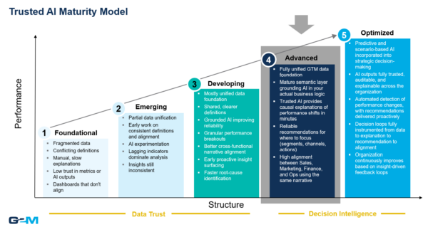 Organizations that continue their momentum will enter the Optimized stage, where Trusted AI becomes a true operating system for the business, continuously scanning performance, anticipating risks, surfacing opportunities, and enabling fully proactive, real-time decision-making at scale.