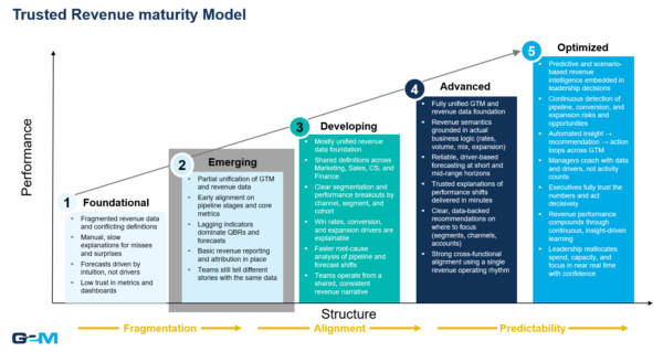 With consistent definitions and a unified revenue foundation in place, your organization will be ready to move into the Developing stage, where revenue shifts become explainable, alignment improves across teams, and leaders can confidently answer why performance is changing.