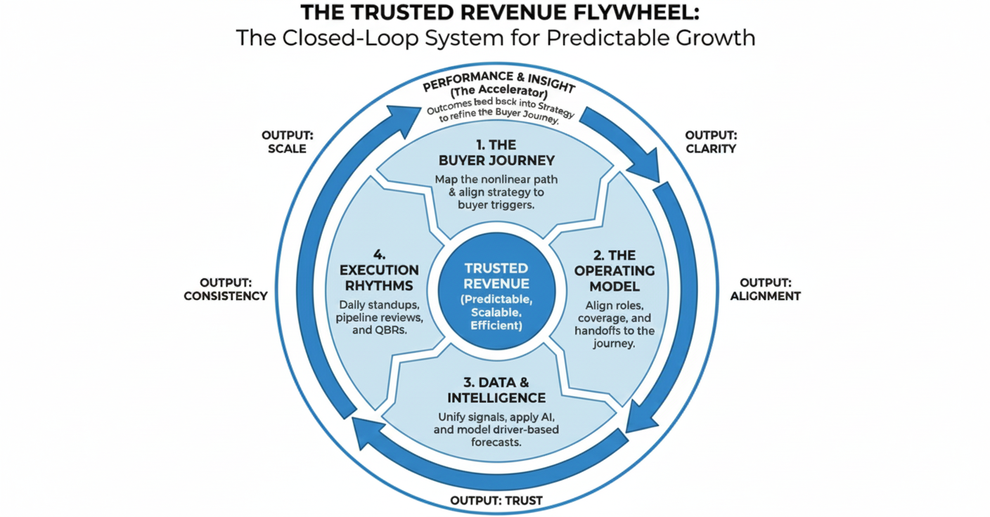 The Trusted Revenue Flywheel: the operating model that aligns buyers, teams, and execution.